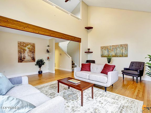 Not your typical Anchorage cookie cutter house. This ranch home w loft is located on a corner lot less than two blocks from the Bayshore Clubhouse and has an alpine feel with vaulted ceilings and abundant natural light. Close to the bike path and walking trails in the heart of south Anchorage. Nicely appointed kitchen with stainless appliances, breakfast bar and utility room. Heating inspection completed. Back yard features spruce, birch, mountain ash, cherry, crab apple, maple as well as peonies, tulips, raspberries and lilac. South facing back deck great for grilling and parties. Roof top solar panels that produce 6.4 KW of electrical power installed in 2020. Wired for whole house generator. New carpet and new paint (interior DS primarily). Amazing home in the popular Bayshore area. Easy to view, don't miss out on this awesome opportunity.