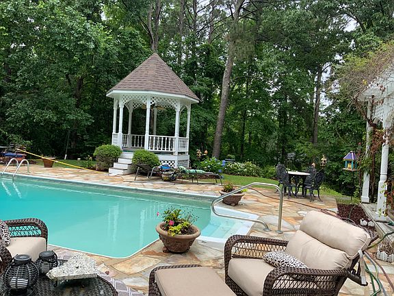Price emprovement! Beautiful home with lots of porches to sit and watch the sun set! Saltwater pool. Hot tub. Awesome entertainment pavilion with surround sound and tv. House and garage have new roofs. New garage doors. Two car garage with exercise room with bath above it. Small Koi pond in garden area. This home is the perfect home to entertain and enjoy friends and family. Some outside statues and fountains can be purchased separately. Owner is a real estate agent.