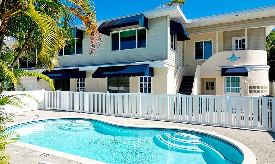 TWO STORY TRIPLEX presents a rare opportunity to own a piece of coastal paradise in Central Holmes Beach. Comprising three separate units turnkey, this property is a dream investment or a fantastic multi-generational family retreat. With a shared pool and an unbeatable location just one block from the pristine beaches, this property is a slice of tropical heaven. The upper floor is a spacious and welcoming 4-bedroom, 2-bathroom unit. Natural light pours in, creating an airy and serene atmosphere. Enjoy the comforts of a fully equipped kitchen, a generous living area, and a private screened in porch to soak in the beautiful island views. Perfect for hosting family and friends in a relaxing setting. The first of the ground-floor units offers 2 bedrooms and 2 bathrooms. An open-concept living space allows for a seamless flow between the kitchen, dining, and living areas. The second ground-floor unit is a cozy 1-bedroom, 1-bathroom space designed for privacy and comfort. It's perfect for a couple or as a tranquil retreat, with its own living area and kitchen. The triplex boasts a shared pool area, where residents and guests can bask in the Florida sunshine and take a refreshing dip to escape the heat. The pool was re-marcited this summer (2023). The lush tropical landscaping surrounding the pool adds to the serene ambiance. The triplex enjoys a coveted location between the two bridges on Anna Maria Island, providing easy access to the island's attractions. What truly sets this property apart is its proximity to the beach - just a single block away. Even better, there's no need to cross any major streets, ensuring safe and convenient access to the island's pristine shores. The location makes it an ideal destination for vacationers and a sought-after investment opportunity. This triplex in Central Holmes Beach is a gem that offers a blend of luxury, comfort, and an unbeatable island lifestyle. Don't miss out on this unique chance to own a piece of Anna Maria Island's paradise – schedule your viewing today and start living the dream!