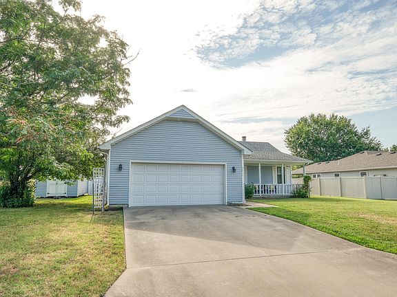 Well maintained 3 bed/2 bath home in the well established North Joplin neighborhood of Oakland Heights! Situated on a dead-end street, you will love the covered front and back porch, vaulted ceilings, and full white vinyl privacy fence. Inside, discover a living room with wood burning fireplace that flows nicely into the kitchen/dining area. The kitchen provides oak cabinets, a bar for seating, adjacent laundry area, and dining area with access to the back porch. The primary suite offers tray ceilings, a walk-in closet, and bathroom with walk-in shower. 2 more bedrooms share a full hall bathroom. Quick access to Rangeline/Zora. Seller offering $775 Prime Plus Plan from Achosa or towards a home warranty company of buyer's choice.