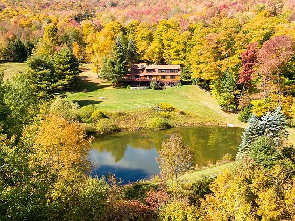 Imagine driving up a beautiful Catskill Mountain Hollow entering an exclusive but understated enclave with well maintained, privately sited homes. At a bend in the road, turn into your own private retreat - a place of serenity, unparalleled beauty surrounded by nature. This lovely property is both rare and wonderful. THE HOME - Walking up to the home you are met with a welcoming covered front porch - a great place to meet guest or sit down with the latest best seller. Entering this handsome Alta Log home there is a warmth and sense of comfort around every corner. The inviting living room opens to the dining area and kitchen. One of the defining details of this area of the house is a 3 sided stone fireplace. The kitchen features granite countertops, loads of cabinets and stainless appliances. The dining area opens to a wrap around deck and has commanding, long mountain views. At the far end of the house is the 31 x 22 great room - a perfect space for large gatherings & parties. Two bedrooms at the top of the stairs are separated from the Master Bedroom by a full bathroom and office/reading area. The Master bedroom suite is grand and very roomy. One of the defining features of the Master bedroom is a wall of windows - giving a sense of being surrounded by nature. The basement has been finished off with an additional 900 square feet of living & recreational space, including a full bathroom. In the basement there is a separate room - an ideal place for fun and games. A fifth bedroom could easily be carved from one of the generously sized common areas. The wrap around deck and lower level stone patio offer many places to entertain, relax, or simply take in the stunning mountain setting. Recent updates includes new Anderson Windows through-out, exterior and interior sanding, sealing and staining and new exterior moldings.THE SETTING - The house was designed to take in the impressive, inspiring, long mountain views - on a clear day you can count 12 peaks giving it one of the best views in the area. The rear of the property is surrounded by verdant mountains forest framing the house organically with its surroundings. Your very own beautiful stream fed pond with swimming dock completes the picture - giving this property the trifecta of the most sought after elements - VIEWS, WATER & PRIVACY. Adding to that is a parklike setting, with numerous places to relax, recreate, take in the spectacular views and lovely natural setting. This is a true sanctuary - a legacy property that is one of a kind. LOCATION - Located about 2.5 hours from New York City and at the end of one of the prettiest area Hollows. It is part of the Canada Hollow Homeowners Association which covers 470 acre with only 14 upscale homes and has a private, tranquil, winding road through the association Minutes to the quaint villages of Margaretville and Andes you are close to restaurants, shopping, antique stores and more. The home is a short drive to Belle