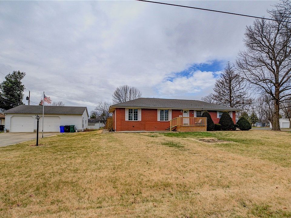 Wonderful location for this updated all brick Ranch! Great layout of living space offering 3 bedrooms, 2 full baths and a gorgeous 4 season sunroom with vaulted ceilings and access to the newly added deck. Updated galley style eat in kitchen with stone backsplash, upgraded appliances, pantry and breakfast nook with additional storage. Replacement windows, fresh paint, updated tiled tub/shower and so much more! Finished lower level with large family room, rec room with bar, Full bath and additional flex room for 4th bedroom option or home office. Huge Garage with epoxy floors, BONUS storage shed behind along with a fenced garden area, firepit & well manicured corner lot. Come fall in love with this Southside Gem!
