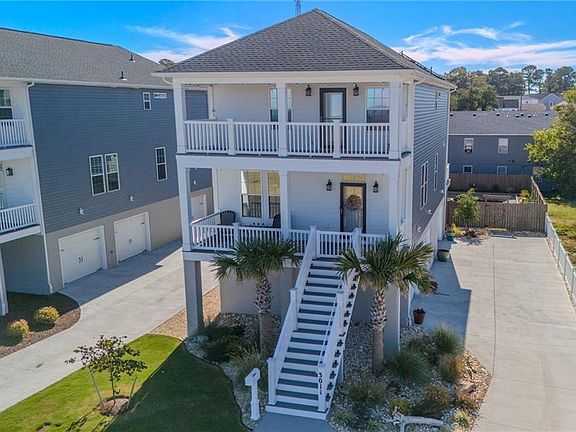 Gorgeous Ocean View home! Enjoy sweeping views of the bay with easy beach access. The house features two full length front porches, one of which is off the second floor primary bedroom. The first floor primary suite is set up to also be used as a MIL suite if needed. This house is NOT in a flood zone, flood insurance not required! Tray ceilings, beautiful trim work, granite throughout, upgraded stainless steel appliances, spacious fenced in backyard that has been landscaped for entertaining.