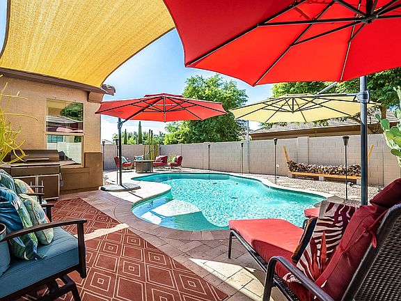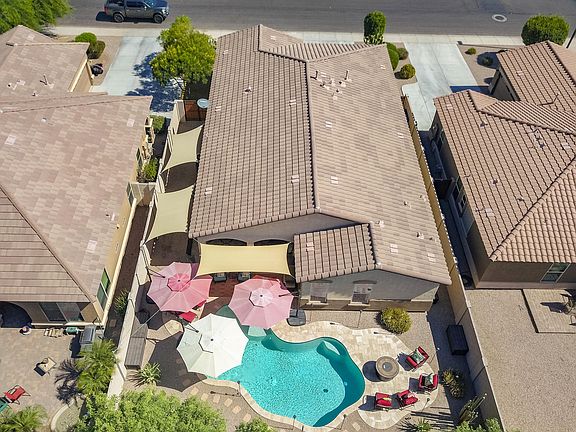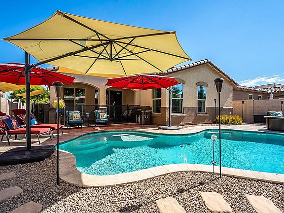 Absolutely STUNNING home located in the prestigious neighborhood of Seville. This 3 bedroom + den home has been immaculately maintained by the homeowners. This home is light and bright throughout! Each window has highly upgraded sunscreens, awesome for added privacy! Some of the outstanding features of this home are large neutral tile in all of the living areas! Neutral two tone paint, The kitchen features upgraded raised panel cabinets, granite counters, custom back splash, stainless steel appliances, including a GAS oven/range, large kitchen island, and pantry! Did I mention the backyard! GORGEOUS sparkling blue pool with travertine decking, in floor cleaning, Hayward eco star variable speed pool pump.There is also a ''protect a child'' removable pool fence. The owners added beautiful custom sun sails perfect for the sunny AZ days! New water heater just installed! You will love living in the community of Seville with lots of common areas, playgrounds, water slides, Olympic pool, fitness center, and restaurant. Check out the Documents tab for more information!