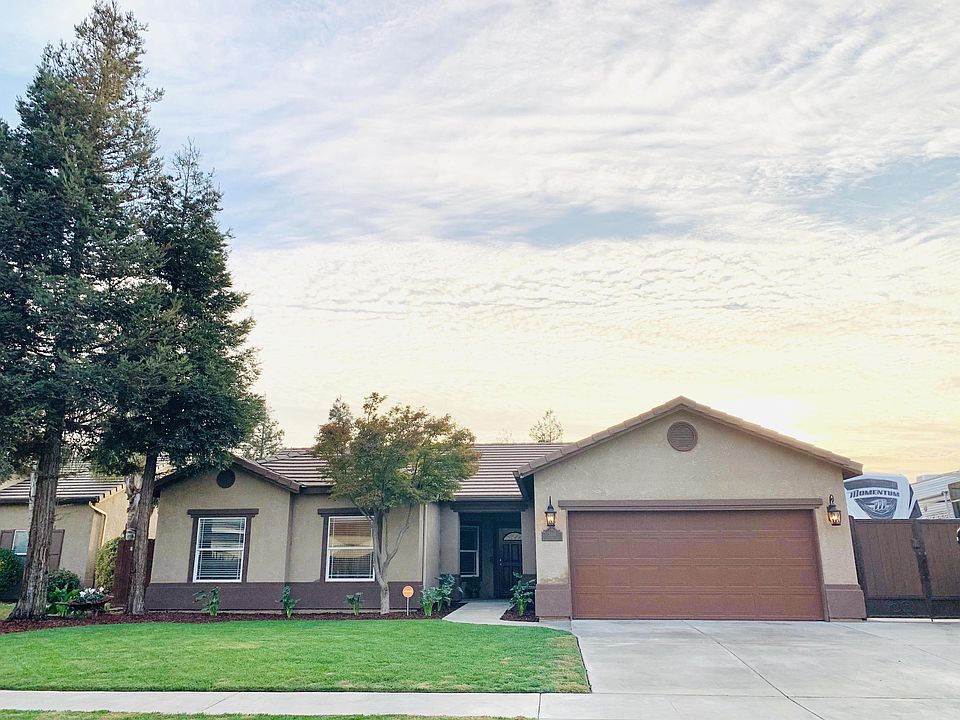 Welcome home to this beautiful 4 bed, 2-1/2 bath Sunrise Estates charm. 1 bedroom currently has a custom built-in cubby storage, floating desk and shelves, making it the perfect office. Other features include 9 ft ceilings, a family room pre-wire for surround sound with a cozy gas fireplace, whole house fan in hallway, entry doors with smart key hardware, concrete around the home, front yard landscaping, backyard landscaping with lighting, and a extra large covered patio with ceiling fans. A lot of love has gone in to maintaining and updating this rare find. Some additional updates include new flooring in 3 bedrooms, recently painted interior, upgraded light fixtures, upgraded outlets and light switches, LED lighting throughout, and the entire home is pre-wired for alarm. But wait! There's more...The garage features epoxy flooring, built-in shelves with cabinets, and pull down ladder accessing even more storage. A large metal gate secures the long and wide RV parking with hookups.