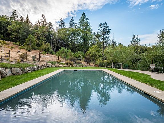 An enchanting Camino compound with unparalleled views! Single story Main House is defined by its timeless charm and offers 2BD & 2BA, high-end finished throughout and a balcony with lavish views. A stunning 4,100 sqft garage/workshop/office filled with windows presents 30ft open beam ceilings, library, full bath, fireplace, and 6+ car garage. A beautiful 20x40 built-in salt water pool compliments with Pool House w/ 2BD & 2BA. The gated grounds offer lush landscaping on 10 private serene acres.