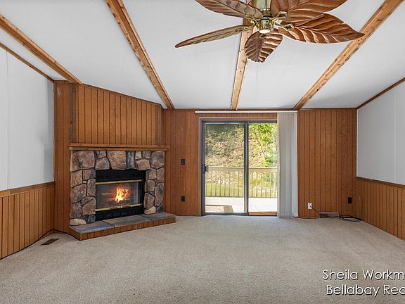 Spacious floor plan with three bedrooms and 2 full baths, laundry room, kitchen with eating area and large living room with fireplace. Off from the back of the home you will find two decks, one is covered. For outdoor storage there is a very large shed. Great county living for an affordable price. Don't miss out!