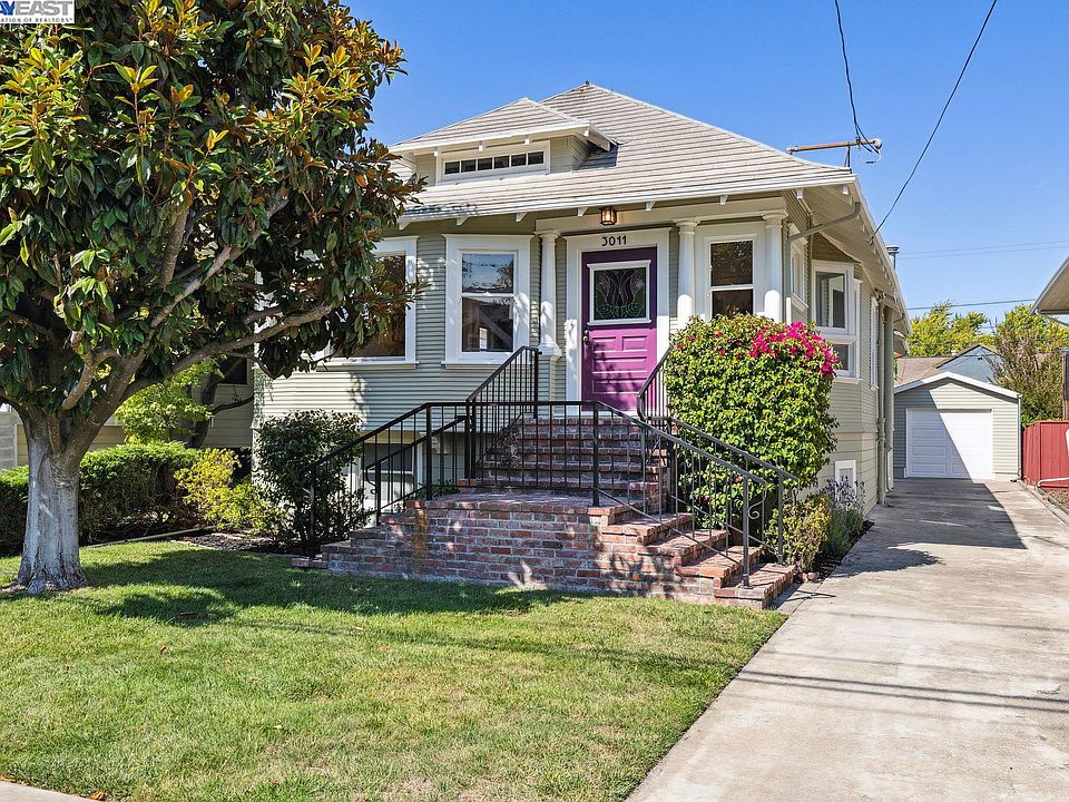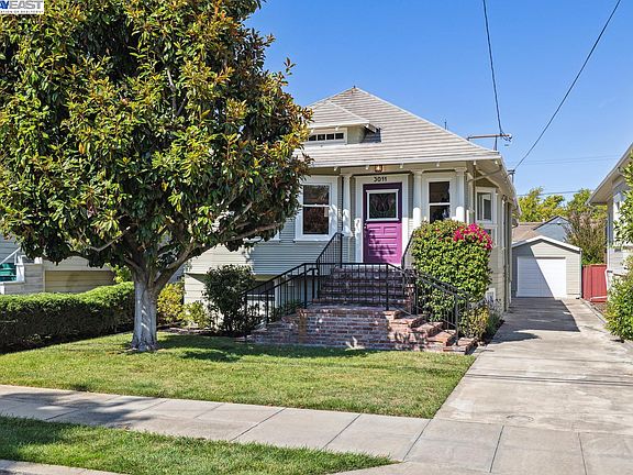 First time on the market in over 65 years, this wonderful home is just what you’ve been waiting for! You're welcomed into an expansive living/entry room with coved ceilings and wood floors surrounded by windows bringing beautiful natural light into the home. The coved ceilings and wood floors continue into the formal dining room with paneled wainscotting and decorative plate rails complemented by bay window design. The home was expanded in the 1970's creating a spacious eat-in kitchen with ample preparation space, an abundance of cupboards and kitchen pantry. An additional bedroom and bath were added resulting in a single-level, 3-bed, 2-bath 1,502 sq ft home. If that weren't enough, the home is loaded with storage space and opportunities Expansive attic above, large basement, storage space and tall crawl space below, extra-long driveway with 2-car tandem garage and attached workshop, perfect for home DYI projects or possible ADU. All this and located in the desirable East End of Alameda, close to schools, parks, shopping, theater and so much more! You’ll love calling 3011 Lincoln Ave home!