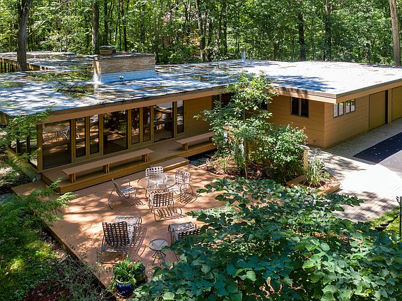 MULTIPLE OFFER SITUATION SELLER CALLING FOR HIGHEST AND BEST BY MONDAY AUGUST 24TH BY 3PM. Exciting architecturally-significant Mid-Century Modern Residence on an idyllic 2+ acres surrounded by nature. This passive solar home was designed by noted architect Edward R Humrich after he was commissioned by steel magnate Edward Ryerson to design these low slung Prairie Style homes in Riverwoods. The perfect wooded setting for this style of architecture. Intended to blend harmoniously with your surroundings with walls of windows providing panoramic views. Natural brick walls, board & batten ceilings, wood floors and many custom features reminiscent of the works of Frank Lloyd Wright. This sprawling ranch offers 2731 sqft plus 2-car attached garage. Live in a work of art surrounded by the glories of nature. Enjoy the seasons change from this incredible property. So private! So serene! Yet minutes to shopping, dining & transportation.