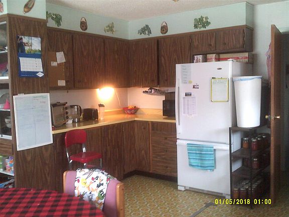 Log sided home with open concept in the living, kitchen and dining areas. Bright home with lots of windows and bedrooms are good sized. Lots of storage. Home needs carpet or flooring. Chain link fenced all around. Roof is new.