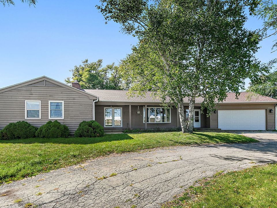 Welcome to this sprawling 4-bedroom ranch situated on nearly an acre lot, offering a flexible floor plan with an in-law arrangement in the finished basement. The main level features a spacious living room with a fireplace and abundant natural light, a dining area with bay window and seating that opens to a bright kitchen with plentiful cabinetry, a breakfast bar, built-in oven, and separate cooktop, plus a versatile flex space/bonus room for additional living and entertaining. Convenient main-level laundry and a sunroom overlooking the outdoor space add to the appeal. The primary suite boasts hardwood floors, dual closets, and an en-suite bath, while two additional bedrooms and a full hall bath complete the main level. The finished basement could be an in law suite, offering a large family room with fireplace, eating area, second kitchen, fourth bedroom, full bath, and utility room. Outdoors, enjoy a covered patio and deck overlooking the private yard with mature trees. A heated 2-car garage and prime location in a peaceful country setting, just minutes from shopping, dining, and interstate access, make this home the perfect blend of space, comfort, and convenience.