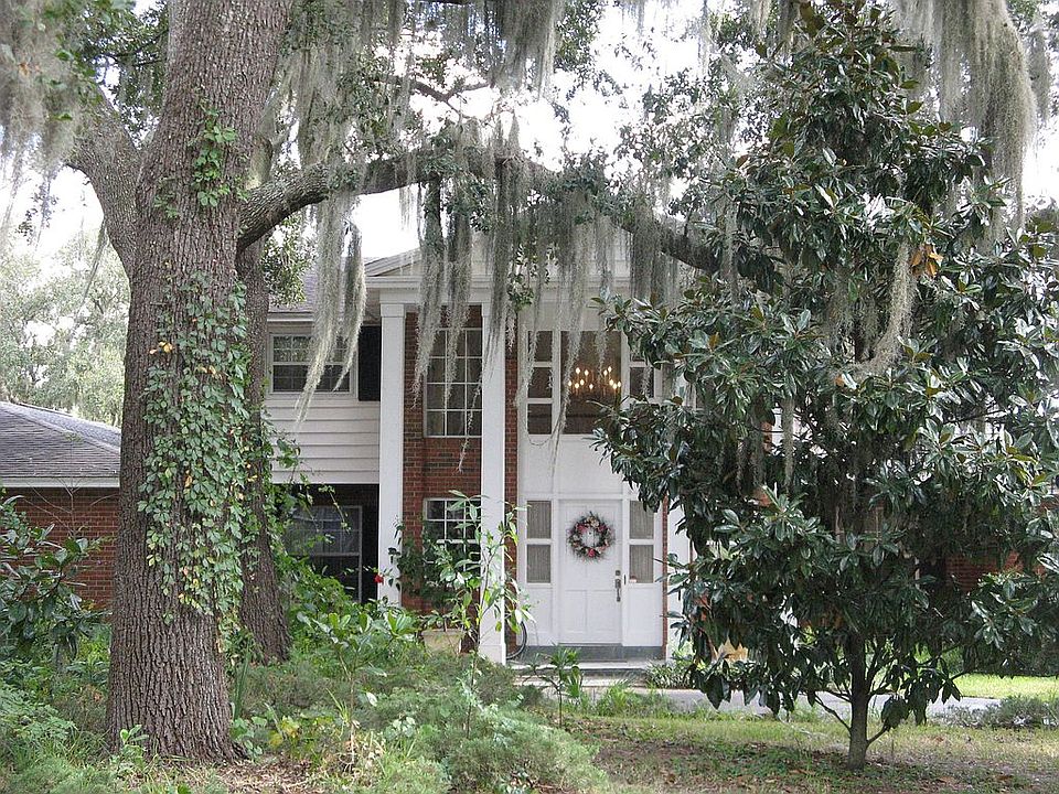 2 story brick home on 4.3 acres located at Prairie Bluff adjacent to Gainesville Country Club with golf cart access. 4,179 sq ft under air, 2 bedrooms downstairs and 2 bedrooms upstairs. large dining and family room overlooking the prairie, formal living room, breakfast nook and wet bar, cathedral entrance, foyer with marble floors. Cedar closet, office/library room, laundry room, pantry walk-in closet, two screened porches, side entry 2 car garage with cabinets and storage/workshop, sprinkler system, irrigation well, only 3 owners, majestic oaks, fruit trees and bushes, pasture area, zoning allows horse. Sold AS IS