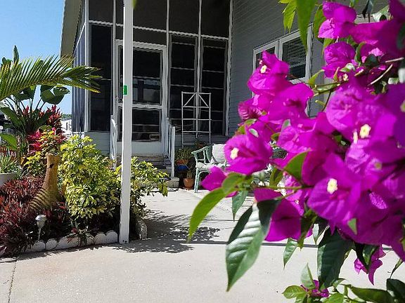 Florida's flora and fauna loves this house and the spacious lot on which it sits! So will you! The magnificent colors and foliage adorning the exterior are just a preview of the completely and superbly upgraded interior. This turnkey two bedroom, two bath home is lovely everywhere you look. From the new custom kitchen cabinets and counters to the fantastic wood and tile flooring throughout, you will be amazed! How about the new granite counter tops in the master bath with cork flooring. Only the best in here! If you want a home that is move in ready and truly finely decorated then come see this gem! Lot Rent: $645.45/Month