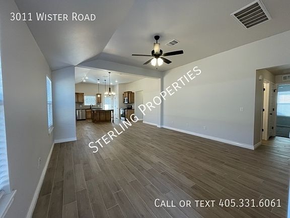 Newer built 3 bedroom home in the Greenleaf Trails community in NE Norman. Open floor design with wood look tile throughout the main living areas. Master suite to the back of the home with a large walk in closet, separate garden tub and shower. Spacious utility room with ample storage is adjacent to the master bedroom. Secondary bedrooms to the front side of the home with a mud bench in the landing area. Carpet in the 3 bedrooms complete with ceiling fans. Kitchen features stainless steel gas range with built in microwave, quart kitchen island overlooking the dining and living space. Lots of windows for natural lighting. Covered back patio with fenced yard, pet friendly with additional refundable pet deposit. Community amenities include walking trails, playgrounds, splash pad and fishing ponds for your enjoyment.
