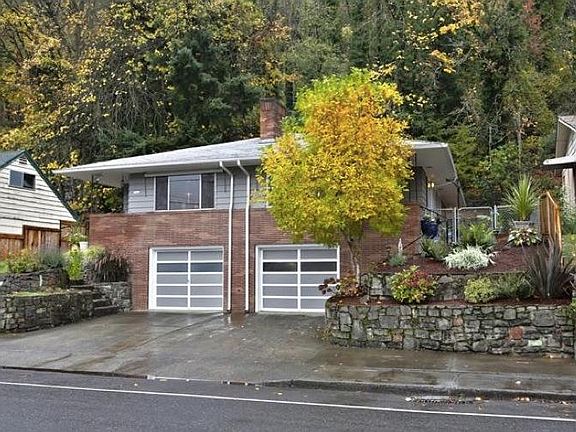 Quality+craftsmanship touch every surface of this mid-century masterpiece featuring orig hardware+millwork, built-ins+roman brick. Classic+practical design w/ample storage+tuck under garages. Enjoy terraced yards w/city views+twinkling lights. Top it off with an urban hike in nearby historic Rocky Butte.Rare opportunity to own the perfect side by side duplex in one of the city's most scenic+convenient neighborhoods.