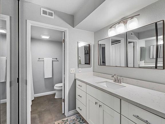 Nestled at the end of a tranquil cul-de-sac and embraced by lush green belts and mature trees, this private end-unit offers breathtaking views and unparalleled privacy. Every detail has been meticulously attended to in this beautifully maintained home. The interior boasts white shaker cabinets, recessed lighting, quartz countertops, stainless steel appliances, and laminate flooring throughout. Custom tile showers, an open floorplan and baseboards enhance the home's modern appeal. Enjoy entertaining on the spacious second-floor patio, or step out from the master and second bedrooms onto an extended lower patio, perfect for soaking in the serene surroundings. Property comes with huge storage unit for any extra space needed. The community features two pools with spas, two tennis courts, expansive open green spaces, and mature trees, offering a resort-like lifestyle. This turnkey home combines modern upgrades with tranquil views, making it a must-see!