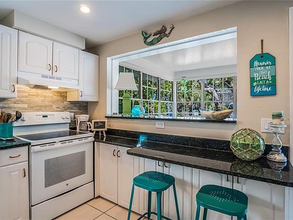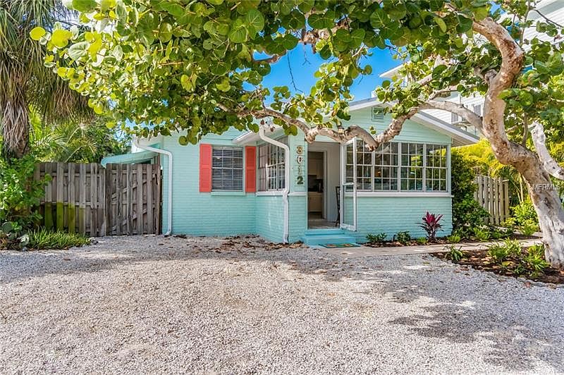 When it comes to "location, location, location" this MUST SEE home is one house off the beach, and has it all including ocean views! Avenue E is widely considered one of the best streets on Anna Maria Island as you can enjoy total peace and quiet, walk to stores in minutes, and walk onto Holmes Beach in under 60 seconds. Known as the Sandbox, the backyard of 3012 Avenue E has hosted some of the best Trop Rock performers in the country. As the colorful signs on the fence suggest, entertainers such as Scott Kirby (plays with Jimmy Buffett), Jimi Pappas and even Hugo Duarte have all performed in this unique space complete with a tiki bar, hammock area (formerly the stage), inviting pool and lush tropical vegetation. Another feature of the massive backyard is the one-of-a-kind sunset viewing platform where you can watch the waves & sunset from the comfort of your backyard. The newly renovated classic one-story concrete block home boasts a new roof (2016) and is tastefully furnished . The charming 2 bedroom, 1.5 bath house easily sleeps 8, using the sunroom's trundle bed and the couch in the living room-- and boasts flatscreen in every room, brand new furniture as of 2018, updated bathrooms, new granite countertops and a new dishwasher (2018). The air conditioning unit was also updated in 2016 and the pool heater is brand new as of a few months ago. Not your cookie-cutter two bedroom, this house has a musical legacy that friends and family are sure to enjoy hearing about for years to come.