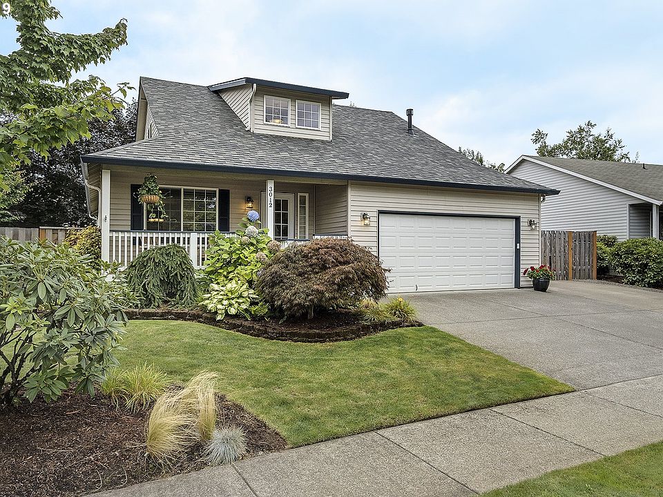 Great 3 bedroom home with master suite on the main floor. The kitchen opens to the family room with a gas fireplace. Two bedrooms and full bath upstairs. Open the backdoor to a beautifully landscaped & fenced backyard with sun setter shade over the patio, garden beds, outdoor shed, and dog run. The front yard has a covered porch and RV parking.