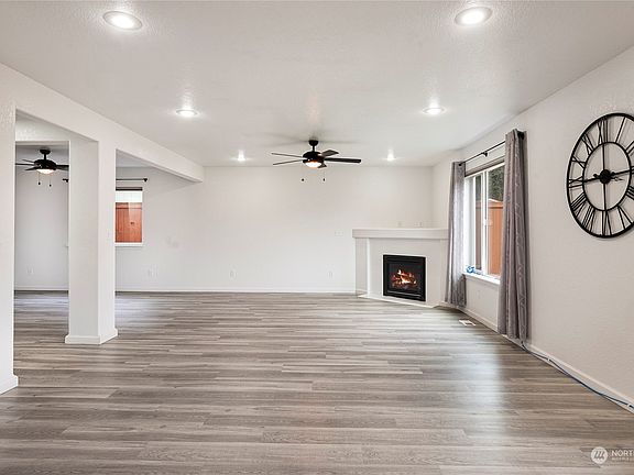 Beautiful, spacious, light 4 bedroom, 2.5 bath, 2475 sf with adu internet wired office space in backyard. Kitchen, dining, living room area open concept with new vinyl plank flooring, pantry, appliances inc, eating bar, custom blinds, fireplace, double door entry to bedroom/den on main floor, half bath and large storage area. Open stairway, additional 2 bedrooms, bonus room with fireplace, primary bedroom with walk-in closet, and double room bath allows for private use of bath fixtures, utility room, and access to possible storage areas. Enjoy indoor & outdoor living, high speed internet, patio fun, fully fenced & landscaped, with sprinkler system. Easy freeway access, short commute to JBLM, close to all services.