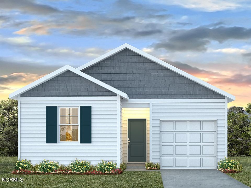 Waterside in the beautiful coastal town of Surf City presents the Sullivan! The Sullivan is a new floorplan designed for efficient living, offering a 1-car garage, 3 bedrooms, and 2 bathrooms. As you move past the Foyer and two front bedrooms, you enter an open concept living space that flows into a spacious kitchen and dining area. The Primary Suite, located at the back, features a walk-in shower, a walk-in closet, and a single vanity. If you're seeking a comfortable and modern home with a practical layout, the Sullivan is a great choice. Waterside Amenities include a swimming pool, clubhouse, fitness room, firepit, play ground, multi-sport court, sand volleyball and walking trails throughout the community. The white sand beaches and the beautiful bluish green waters of the Atlantic Ocean offer a perfect combination of adventure and relaxation. An almost year around mild climate means you can enjoy the warm salty air and all that the area offers year-round. Your new home at Waterside is less than a mile to the new high-rise bridge with a pedestrian lane where you will have sweeping views of the Atlantic when you are at it's crest. Waterside is an easy drive to Wilmington and Marine Corps Base Camp Lejeune and all of the conveniences are nearby. Home Is Connected® Smart Home Technology is included in your new home and comes with an industry-leading suite of smart home products including touchscreen interface, video doorbell, front door light, z-wave t-stat, & door lock all controlled by included Alexa Pop and smartphone app with voice! The photos you see here are for illustration purposes only, interior and exterior features, options, colors and selections will vary from the homes as built.