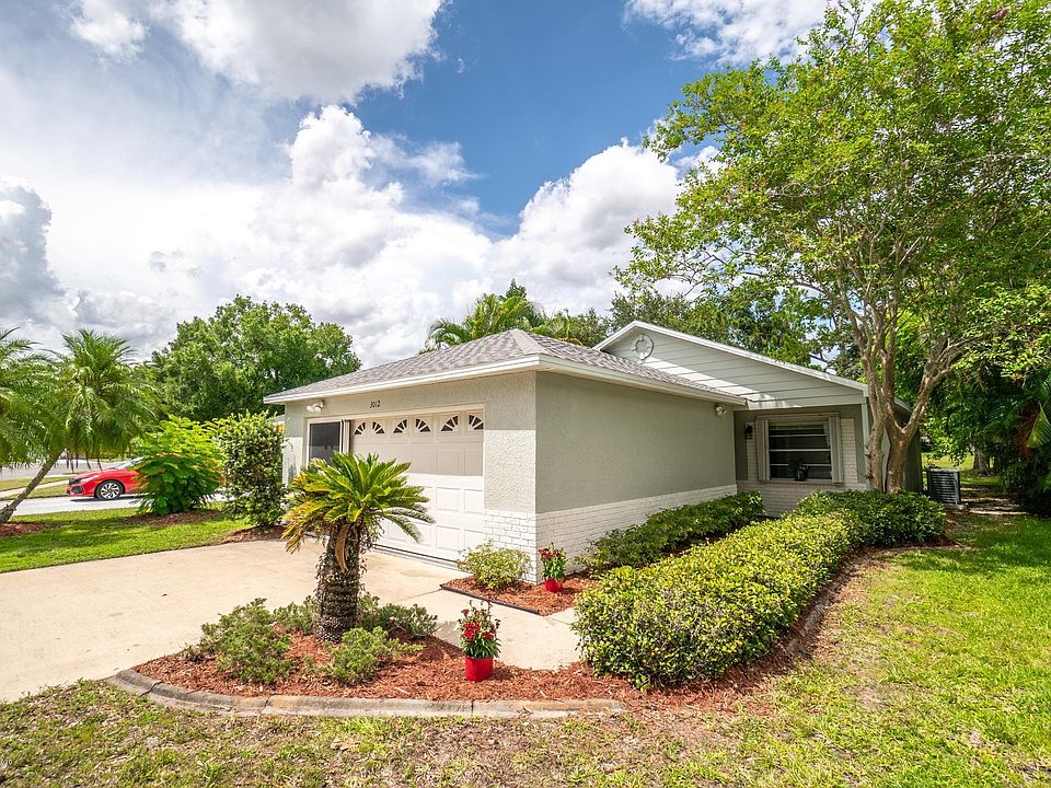 Look no further! You found your peaceful place! Inside it's light & bright with vaulted ceiling, skylights and a beautiful lake view! Outside stroll down tree lined streets or relax in your large yard with mature trees & a patio overlooking the lake. This spacious 2 bed/2bath home is move in ready! Kitchen with pantry, hall closets, walk-in closets & built-ins. Feel at home with new fans, light fixtures, switch plates and new windows coming for the Florida room! More updates include a new roof2020, water heater 2017, A/C 2010 and more. The 2 car garage has a full screen for ventilation & room for a work bench. Half block to pool & tennis, low HOA. Accordian shutters! Fence allowed! Blocks to park, trails, shops, restaurants & driving range. Close to I95, US1, SR520, SR528, Cocoa Beach, Cape Canaveral, Patrick Air Force Base & Orlando. Don't wait it won't last this house has charm!