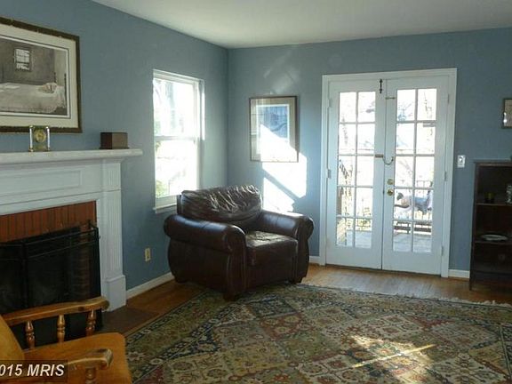 Brick Cape Cod sits on knoll w/ fenced backyard, private driveway and rear garage entrance. Hardwood floors throughout, new gas heat system and new A/C unit. French doors from FR lead to deck and beautiful fireplace in FR;sitting room off kitchen;separate dining rm, 2 large bedrooms upstairs with updated full bathroom.Great location. See documents in MRIS.