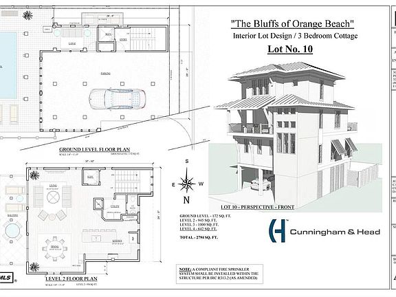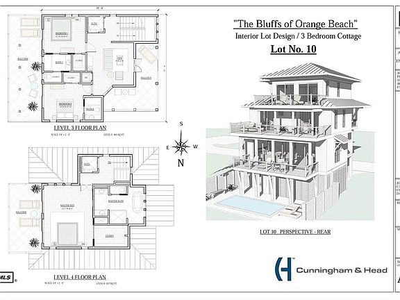 The Bluffs is an exclusive new beach front development in Orange Beach! Lot 10 will have four bedrooms and three & 1/2 baths. Each lot at The Bluffs will feature gold fortified construction by Phil Harris, a top floor master suite, private gunite pool with lanai & grilling area and 1 parking space for each bedroom along with fiber optic internet capability. Each home will have wood floors throughout, an elevator to all floors, impact resistant doors & windows, solid core interior doors, metal roof, hardi board exterior, outdoor shower & multiple lockable storage closets. Kitchens will offer a large island, quartz counter tops, pantry, custom cabinetry with Wolf/Sub-Zero/Thermador appliances. There will be a large utility/laundry room, wet bar, 10' ceilings on main level, 9' ceilings for bedroom levels. Baths will feature tile floors and showers with quartz counters. All non gulf-front residences will have a community dune walk-over. Each home in The Bluffs will offer one parking space per bedroom plus additional community parking for guests. The Bluffs will require a 3 night minimum rental. The Bluffs are unfurnished, photos and drawings are representative.