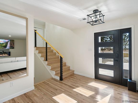 Escape the busy city to this country getaway minutes from North Cheyenne. This home has been transformed into a luxury retreat. You'll love the elegant finishes throughout. It comes with 4 acres and sheltered by large pine trees. Enjoy gourmet kitchen with scullery pantry, gorgeous bathrooms, hardwood floors, quartz countertops, smart appliances, anti-fog/LED mirrors, new windows, The thoughtful redesign will have you love coming home.