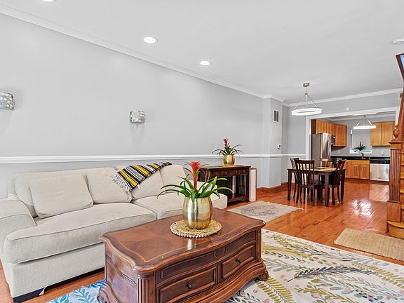 DIRECT PARK FRONT HOME W/ NEARLY 2000 SQ FT OF LIVING SPACE & OFF-STREET PARKING PAD - this 14' wide home features an open floor plan with new hardwood floors throughout, large light filled living room with beautiful park view, separate dining area and updated kitchen with custom shaker wood cabinetry, ss appliances and granite countertops leading to oversized parking pad. The upper level offers 3 bedrooms and remodeled bathroom with skylight. Fully finished walk out basement with laundry room provides endless options! Countless updates in this home - this one is a must see!