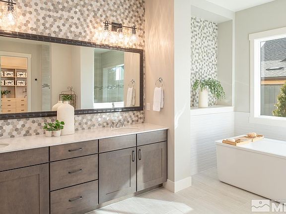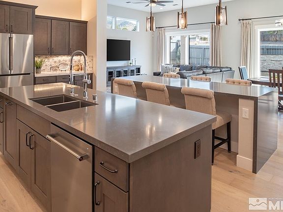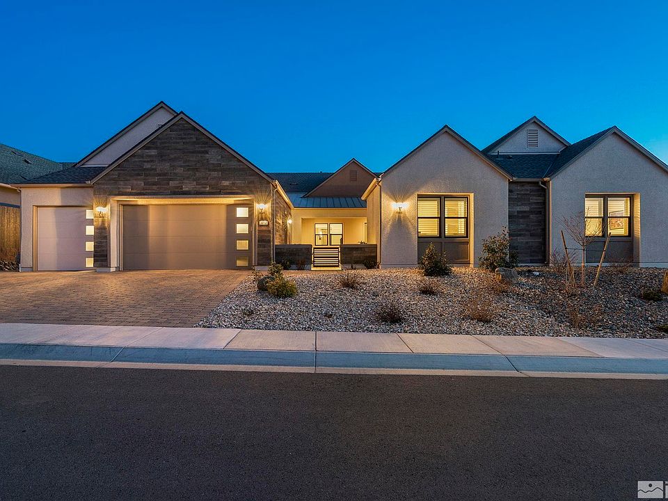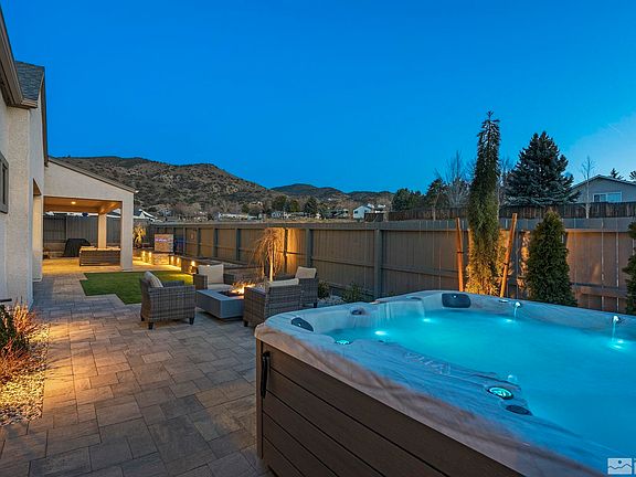Meticulous attention to detail sets this beautiful 4,305 sq ft Stratford floor plan apart. Gated Ridgeline neighborhood in Caramella Ranch. Engineered hardwood, upgraded carpet, and dovetail cabinetry throughout home. Stunning chandeliers and pendants. Kitchen features bonus island with waterfall quartz counter, double ovens, and spacious pantry with custom shelving. Great room has floor-to-ceiling dual-sided stone fireplace. Huge main suite has custom closet cabinetry, custom wall tile, soaking tub,, spacious tile shower with dual heads, slider to hot tub, and gorgeous mountain views. $122,800 in landscaping, including covered outdoor living space, waterfalls, gas firepit, lighting, and brand new Vita Spa hot tub. Tesla solar panels and two Powerwalls (owned free & clear). Oversized garage with epoxy floors and extra storage. Extended cabinetry, custom trim and casing, high-end curtains and shutters, smart light switches, custom mirrors throughout home. Home is walking distance to brand new clubhouse with pool, gym, stunning views, outdoor kitchen, and gathering space for friends. Caramella Ranch is ideally located minutes from shopping, 15 minutes to mountain hiking, and 25 minutes to Mount Rose Ski Tahoe. Enjoy the best the Sierra Nevada range has to offer and Nevada tax advantages.