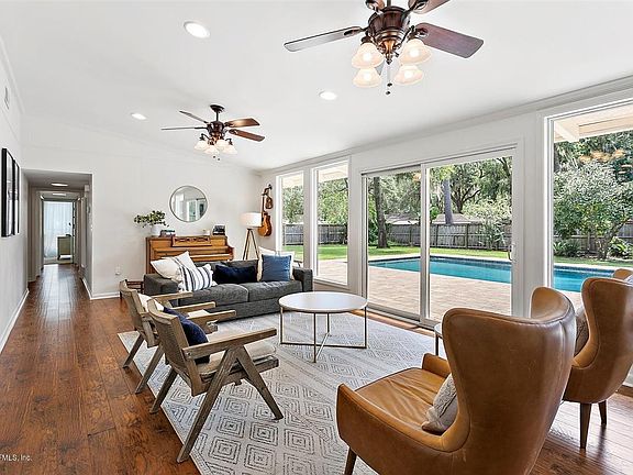 MULTIPLE OFFER NOTICE - DUE BY 09/24 12:00 NOON. WOW Don't Miss This One! One of a KIND 4br/2ba, Mid-Century Modern Beauty located on a beautiful tree lined street in Beauclerc Gardens. Located on large lot (just under 1/2 acre), this home is move in ready and features a sparkling inground pool and large fully fenced back yard. From the moment you enter the front door, you are greeted with expansive natural light. Wood laminate floors throughout main living area. New carpet in the bedrooms. This home features a lovely living room with sweeping views of the pool and back yard. Updated, fully equipped kitchen with granite counters & breakfast nook. Just off the breakfast nook, you'll find a large family room that is currently being used as a homeschool room. Newer windows throughout.