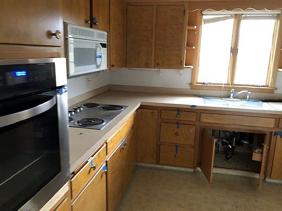 One level property has 3 bedrooms, one bath, full unfinished basement and attached single garage. Has a 14 x 14 finished room behind the garage. There is a back yard concrete patio. This information believed accurate but not guaranteed. Buyer's agent submits offers online.
