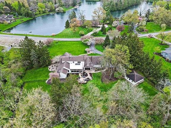 Located in the highly coveted Covington Lake Estates, this home is the perfect mix of traditional elegance and modern appeal. From the front yard, enjoy the scenic view of the association pond situated in the middle of a 1.2 mile neighborhood loop perfect for walking or biking and connected to the Fort Wayne Trails system. As you enter the foyer, a grand, curved staircase and balcony greets you and flows into a formal sitting/dining room. The spacious, eat-in kitchen features vaulted ceilings, a commercial Dacor gas range and loads of space for entertaining. The living room and four-season room are both open to the kitchen and offer panoramic views of the nearly 2 acre lot with mature trees, manicured landscaping and stamped concrete patio. The luxury sized primary bedroom boasts his and her professionally organized closets and a completely updated en suite bathroom with a free-standing tub, custom walk-in tiled steam shower with body sprayers. The den has a beamed, vaulted ceiling, original parquet floors and built-ins; a “secret” panel door hides a closet to make it an optional fifth bedroom. The upstairs balcony opens into two, oversized bedrooms each with their own bathroom and large closets. One bathroom closet has an optional washer/dryer hookup for an upstairs laundry room. The other bedroom closet has access to a huge walk-in attic that can be used for storage or finished for an additional bedroom/bathroom or recreation space. The newly refinished walk-out lower level is the perfect space for entertaining. New LVP flooring throughout with two large recreational spaces, a wet bar for entertaining and a walk-out paver patio with fire pit. The fourth bedroom and full bath are also on the lower level with built-in bookcases, large windows for natural light and custom built closets with loads of storage. The home also features a large, detached garage for additional parking and storage. Deferred maintenance is up to date and includes: newly repainted exterior; newer roof (approximately 8 years old); two new HVAC systems (within last five years). Don’t miss an opportunity to find your forever home.