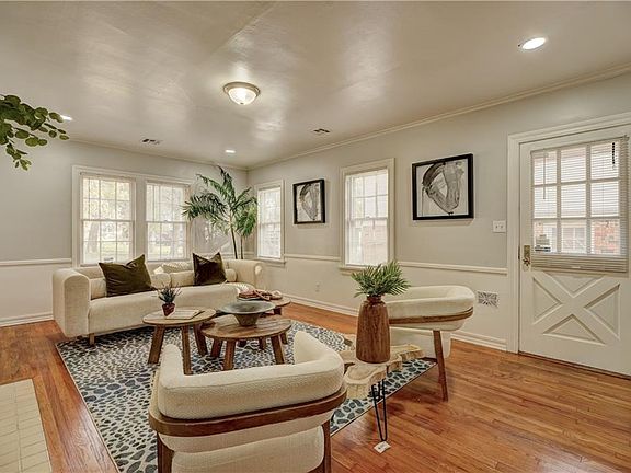 Welcome Home to the May Ten Addition! This 3 bed and 1 bath home has been completely refreshed and sits nestled on a quiet street with large mature trees. As you enter, you will be greeted with natural light inside the front living space. The original hard wood floors have been restored and can be found throughout. As you wander through, you will find an updated kitchen with new stainless appliances, new cabinets, granite countertops, quartz backsplash, luxury vinyl plank floors and a view into the den. The den features a brick wood burning fireplace, beams on the ceilings and a reading nook with built-ins. Many of the updated features include all new paint throughout, new plumbing fixtures and lighting fixtures, blinds, interior washer and dryer hook ups, new sewer line, new electrical wiring, outlets, switches and service panel. The backyard is spacious and has large mature trees for shade and privacy. Located 5 minutes from The Plaza District and 8 minutes The Jones Assembly.