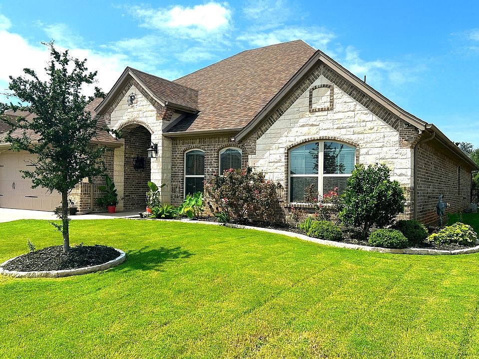 OFFERING $5000 SELLER CONCESSIONS with acceptable offer. This exquisite four bedroom three bath Al Couto home boasts extraordinary architectural design and exceptional craftsmanship. The stunning wrought iron front door leads you to the expansive open living area featuring a tray ceiling, easy care tile , flooring, stone gas fireplace and an abundance of sunlight. The kitchen is a chef's dream with a five burner gas cooktop, stainless steel appliances, expansive island, granite counters and dining area with a designer light fixture. The tranquil primary suite includes an ensuite with garden tub, walk in shower, separate vanities and a massive master closet. The three additional bedrooms are spacious with large closets, carpeting, ceiling fans and features split bedrooms. The two additional baths have striking curved tiled arches and spacious granite vanities. The utility room is oversized with a sink and extra storage. The back patio has been expanded to accommodate those friends and family gatherings. The perimeter of the backyard has semi-private fencing. The roof was replaced in June 2023. The Harbor Lakes community offers a clubhouse with dining, golf and a future Pickleball court for additional fees. The subdivision includes a community boat ramp. Harbor Lakes Plantation is gated for privacy. Don't miss out on this one!