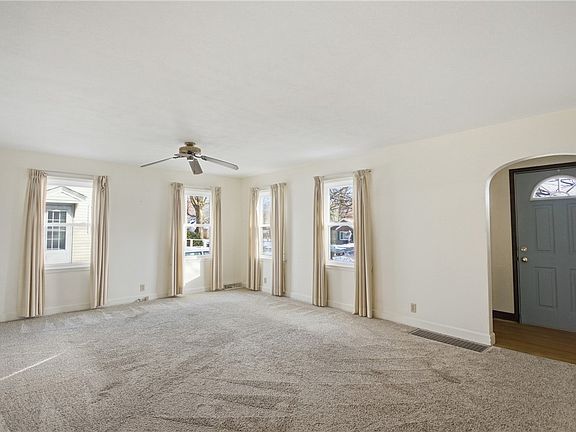 Built in the 1940s, this well-maintained four-bedroom, two-and-a-half-bath home blends classic charm with modern conveniences. Upon entry, a welcoming foyer leads into a light-filled living room featuring an abundance of windows and newer carpeting that enhances the bright, inviting atmosphere.