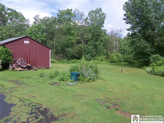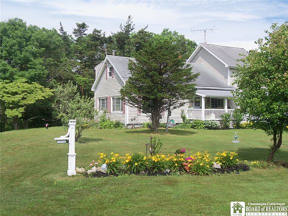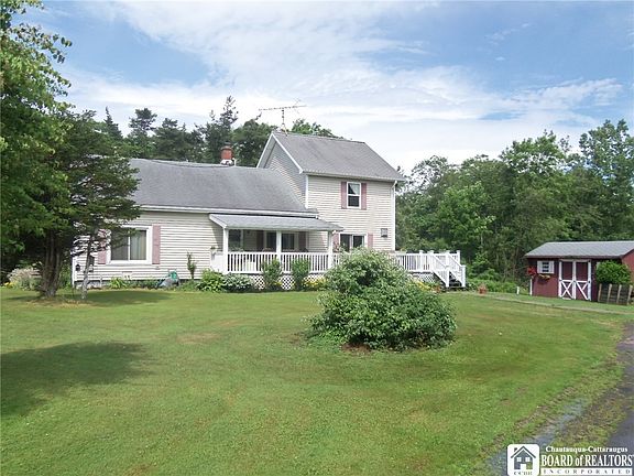 Enjoy country living at it's best in this 3 bedroom 2 bath home nestled on approx. 5 acres. Mostly treed with a 1/2 acre pond, you can sit on the wrap around deck and enjoy nature and the abundant wildlife. Home has large eat-in modern kitchen with cherry cabinets, granite counters, island, dining area, and appliances. Large spacious living room with hardwood floors and stone fireplace, 1st floor den/office, 1st floor laundry room, and full bath. Three bedrooms up, xtra large main bedroom has vaulted ceilings. Full bath up has shower stall. Newer boiler ( 3 zone heat ), 200 amp electric service, full basement, blacktop drive, and storage shed. Forestville Schools, very reasonable taxes!