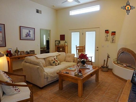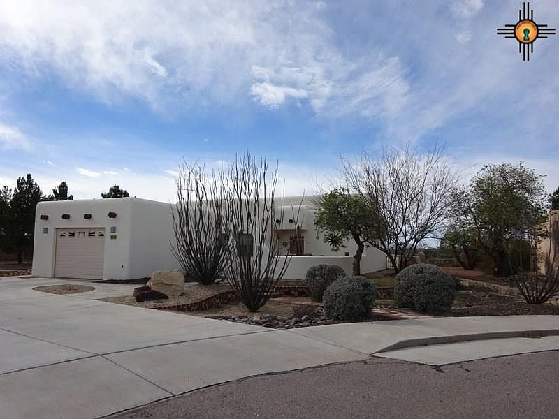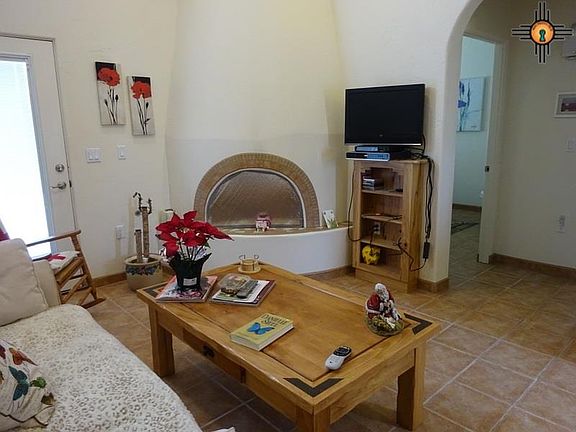 Set at end of Cul de Sac, this 2 bedroom, 2 bath Pueblo, Southwest style house is as nice as it can be. Open eat in Kitchen w/custom cabinetry, Living room with Kiva Fireplace, french doors to patio from Living room and Master bedroom. Tile floors throughout, built in China Cabinet. Computer room, pantry, 1.5 car garage. In Country Club Estates, a HOA adult community with CC&R's. Close to the Golf Course, Downtown Deming, Interstate 10 to Las Cruces, Lordsburg and El Paso Airport. Also direct access on Rt 180 to Silver City, NM.