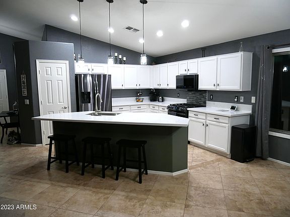 This beautiful home sits on a huge lot nestled next to the neighborhood park with majestic pool! Extended patio, RV Gate. Home features quartz counter tops, large great room with vaulted ceilings, open kitchen with all appliances, and a kitchen island with barstool seating area. Large master suite includes separate exit to patio/pool, master bath with double sinks, separate tub/shower, and walk-in closet. Plenty of grass, and a storage shed. Pool resurfaced in 2020 with Pebble Tech. Won't last long!
