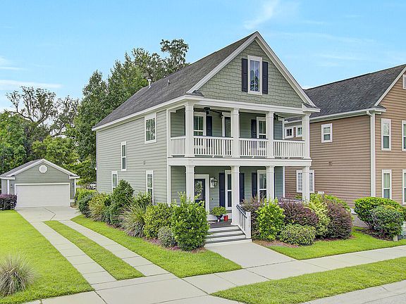 This southern charmer is a dream! 3012 Sage Way is the perfect home in the perfect neighborhood West of the Ashley. The exterior is gorgeous with double front porches, cement plank siding and mature landscaping. Sage Way is a short street in a large neighborhood, so no heavy traffic. The driveway is extra long and leads to a two car detached garage with epoxy flooring and built in cabinets.Inside of the home, it's all in the details! Brand new LVP flooring through out the downstairs, crown molding, a drop station for shoes, purses or book bags with bench seat and shiplap. To the right is a formal dining room that has been turned into a functional office space with a built in desk for two people, lots of great lighting and beadboard chair rail molding.The kitchen has farmhouse white cabinets, pretty granite counter tops, ceramic tile backsplash, large pantry, and stainless steel appliances, including a 5 burner gas stove. The breakfast/dining area is large and comes with a bay window with bench seating. The spacious living area gets great lighting and comes with a gas fireplace. The living and dining area lead you to THE most AMAZING screened in porch. You will want to STAY outside!! Entertain all of the football parties with your gorgeous custom outdoor kitchen, featuring storage, granite counter tops, a mini fridge and grill!! Beyond the porch is a custom fire pit on an oyster paved patio, and fenced in yard with sweet little wooden play house. Upstairs has new carpeting and is home to all three bedrooms and a laundry room. The Owner's Suite is gorgeous, has a shiplap flanked wall, a walk in closet with custom cabinets and shelves and access to the upstairs balcony, where you can sip on your morning coffee or have an evening cocktail. The Owner's Suite bathroom features double vanity sinks, a large soaking tub and stand up shower. Bedrooms 2 and 3 are both a good size and share a hall bathroom with a tub/shower combo. Carolina Bay features 3 swimming pools, each with a play park, a dog park, walking and bike trails, sidewalks on both sides of the street, and a 3 acre park that hosts events such as Food Truck Fridays, July 4th Parades, Easter egg hunts, and much more. The neighborhood is 3 miles to Publix, 5 miles to Harris Teeter, 6 miles to Costco, Target, and Roper St Francis Hospital and 11 miles to MUSC in downtown Charleston. Kiawah Beach is a 13 mile drive and Folly Beach is 14. This is as centrally located to everything Charleston has to offer as it gets!!