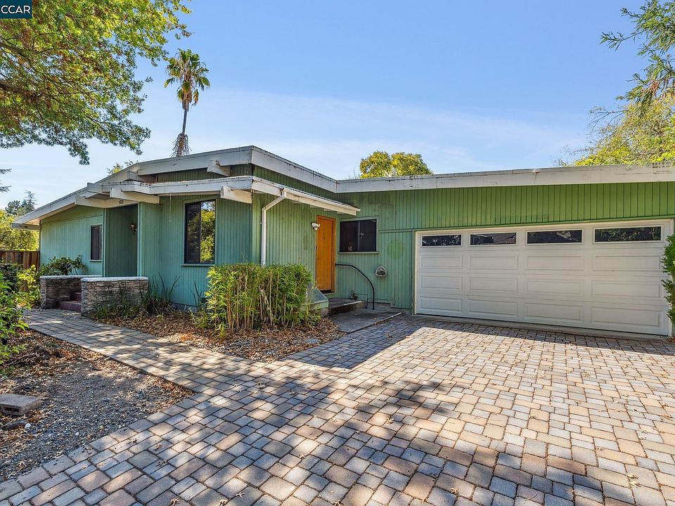 This well loved Mid Century Modern home is located by Roundhill CC and all levels of top rated schools. Features include vaulted exposed beam ceilings ,wood paneled walls and a glassed in sunroom overlooking a sparkling pool. A second entrance to the rear yard perfect for an RV. New sewer line to home, new plumbing and a new pool pump. Bring your contractor to build your dream home on this flat 1/2 acre corner lot on a wonderful street. This home was enjoyed by a well known Alamo Artist since 1960.