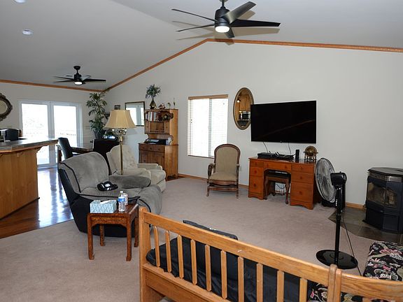 - Interior Features: Vaulted Ceilings, Ceiling Fans, Pellet Stove, Flooring- Carpet, Flooring- Tile, Flooring- Hardwood