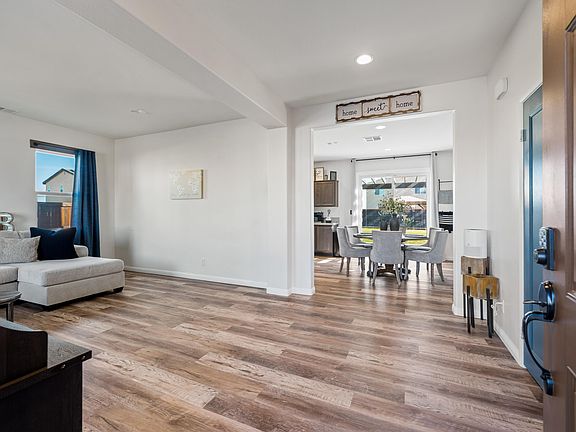 Outside, the generously sized lot beckons with its custom stamped concrete and a sprawling covered patio that extends the entire length of the house. This outdoor haven is an entertainer's dream, and your pets will revel in the lush, vibrant green grass. The home also boasts a tankless water heater for added efficiency, and the solar system requires a mere $108 monthly payment. This home is the epitome of comfort, style, and outdoor enjoyment.