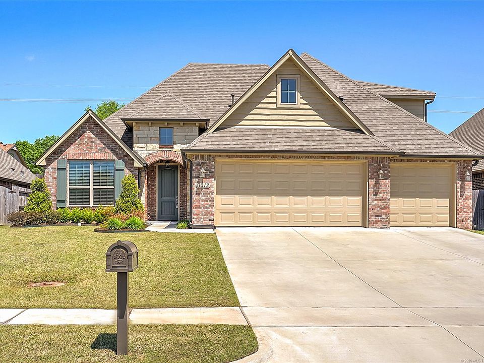 Great home in Broken Arrow schools. 5 bedrooms, 3 full baths, 3 car garage, and game room. Downstairs 5th bedroom could be used as office. Wood floors, granite, island, pantry, breakfast nook. Double sinks, tub & separate shower in master. Refrigerator stays. Amazing floor plan with 3 bedrooms & office down and 1 bed up with full bath & game room up. Covered patio & sprinkler system.
