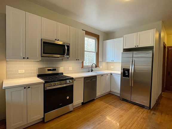 Available June 1. Recently updated 2 bedroom, 1 bathroom + den. Top floor unit in classic Chicago grey stone building. Tons of sunlight on charming Logan Square / Avondale street. New kitchen & appliances. IN UNIT washer & dryer, and air conditioning. Ditch the big landlords, and come be our new neighbor in this well cared-for owner occupied two flat! 10 minute walk to Logan Square farmers market, CTA blue line, restaurants, and nightlife. Cats allowed, no dogs. $50 rent discount for autopay. $50 rent discount for autopay. Owner pays water & trash. Tenant pays electric and gas. Cats allowed, no dogs. Owner occupied. 12 month lease. $55 application fee.