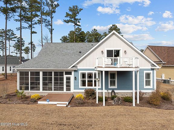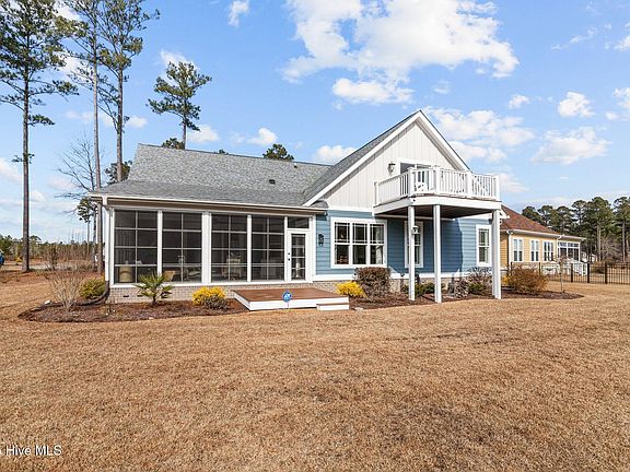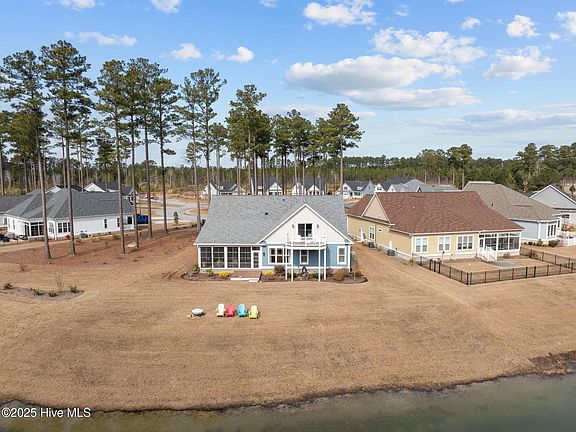 Discover the perfect blend of elegance and comfort in this stunning lakefront home. Beautiful hardwood floors flow throughout the main living areas, highlighted by custom built-ins, a cozy gas log fireplace, and striking coffered ceilings.The gourmet kitchen is designed for both function and style, featuring granite countertops, premium stainless steel appliances, a spacious center island, and a built-in serving area—ideal for entertaining. The dining room boasts breathtaking lake views, enhanced by double tray ceilings and elegant wainscoting.The main-level Owner's Suite is a true retreat, complete with accent-lit tray ceilings, dual walk-in closets, separate vanities, and an oversized tiled walk-in shower. Two additional guest bedrooms and a full bath complete the first floor. Upstairs, an expansive den/FROG provides the perfect space for a media room or play area. A private catwalk leads to a second Owner's Suite, featuring a full ensuite bath, a private balcony overlooking the lake, and ample storage.Step outside to enjoy the screened-in porch or host gatherings on the spacious back deck. Head down to the water's edge to relax around the fire pit and take in the peaceful lakeside setting. In addition the home comes with a whole house generator.Located in the highly desirable Carolina Colours community, this home is just minutes from top-tier amenities, including a community pool, tennis courts, and a championship golf course. Conveniently close to Downtown New Bern's shopping and dining, MCAS Cherry Point, and only a short drive to Atlantic Beach.Schedule your private showing today and experience the best of lakeside living!