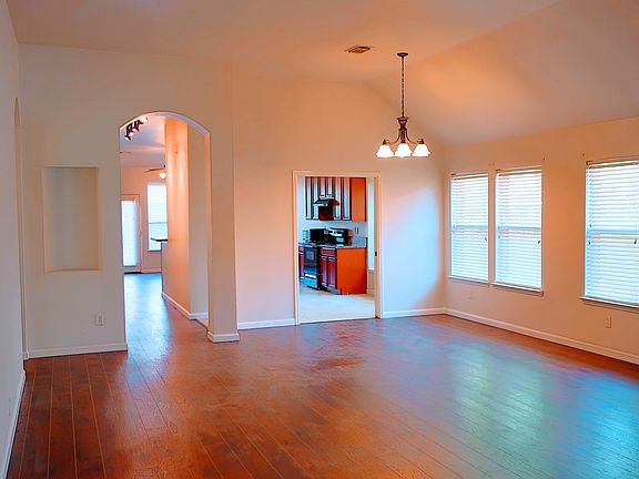 Spacious Open-Concept Home with Flexible Living Spaces Discover this expansive 2,136 sq. ft. open-concept home, perfectly designed for modern living. The layout features two large living areas, seamlessly connected through elegant pocket doors, flowing into a dedicated dining room and a large kitchen. Beautiful wood flooring runs throughout the main living spaces, with durable tile in the kitchen, bathrooms, and utility room. The owner's suite is a true retreat, offering generous space for a private sitting area or exercise equipment. French doors open into a luxurious master bath complete with dual sinks, a separate shower and soaking tub, a private toilet room, and an exceptionally large walk-in closet. Two additional bedrooms provide ample closet space and convenient access to the second full bathroom and utility room. A highlight of this home is the large, private office, set behind French doors. This versatile space can be closed off for quiet focus or opened up to expand the living area. While it does not have a closet, it could easily serve as a fourth bedroom. The attached two-car garage, accessible through the utility room, features a quiet, belt-driven opener with battery backup. The large backyard is fully accessible, with gate access from both sides of the house. Smoking not permitted