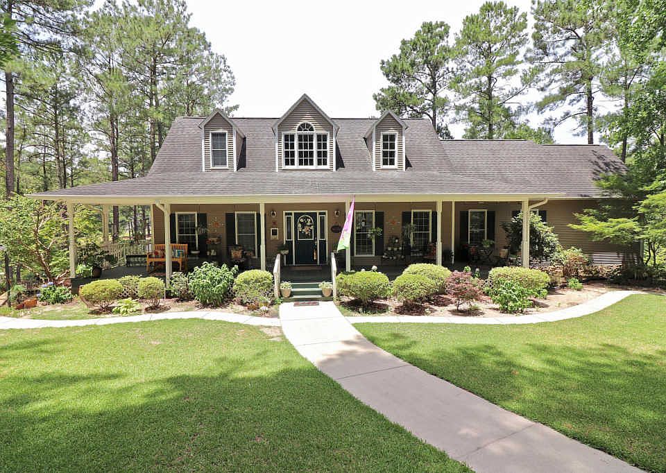 Unique lake front home with dock in the desirable gated, golf club and lake community of Deercroft. This home is situated on a quiet cul de sac street and has amazing lake frontage and views. The rocking chair front porch invites you into the 2 story foyer with soaring ceilings. A stunning, floor to ceiling stone, gas fireplace captures your attention the moment you enter the heart of the home. The living room and dining room are integrated perfectly for entertaining friends & family. There is an abundance of natural light that flows through the entire home creating a bright and airy atmosphere. Kitchen has plenty of cabinetry, farmhouse sink plus a veggie sink, granite counters and a cozy eating nook overlooking the lake.