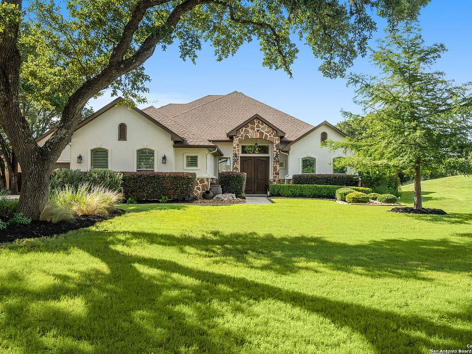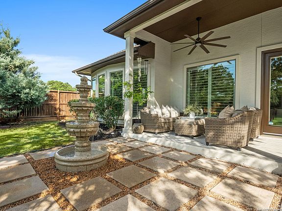 Simply lovely and refreshing Whitestone home in popular gated Setterfeld in Fair Oaks Ranch. Home was built by current owners for entertaining and family gatherings with an Open floorplan. Light, bright and transitional with high ceilings, spacious living areas and a supreme entertainer's kitchen w/miles of counters clad in upgraded high level granite, white cabinetry including server, and Gas Cooktop! Plantation Shutters throughout, Custom Cabinets around the Fireplace, Drapery, Designer Light fixtures in Entry, Flex Room and Kitchen + upgraded granite in Primary & Guest Bath. The luxe Owner's Suite is located at the back of the home, is spacious & features dual closets, garden soak tub, dual vanities + a dressing/gym area. Two guest bedrooms connect via Jack & Jill while Bedroom #4 is privately located with access to full bath. The flex room is perfect for formal dining, living or gathering space while the study offers double doors for style & privacy. Outside entertaining is easy with the covered patio w/TV connection opening to impervious patio area with tranquil fountain. The private, expansive yard features many mature trees and is well landscaped. Setterfeld feeds into Comal ISD and while a part of the Fair Oaks Ranch city system w/parks and trails, Setterfeld offers the lowest tax rate in FOR. Welcome home to 30124 Setterfeld Circle where the living is stylish and easy!