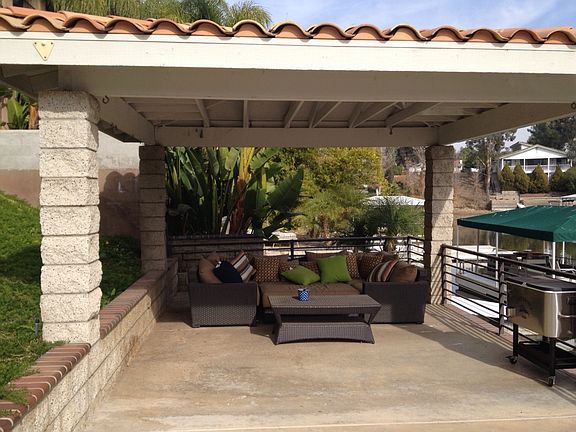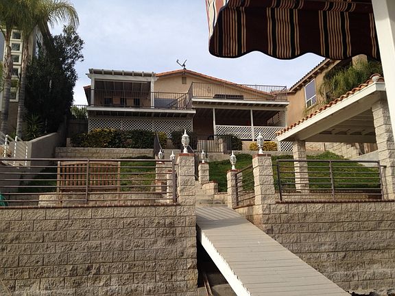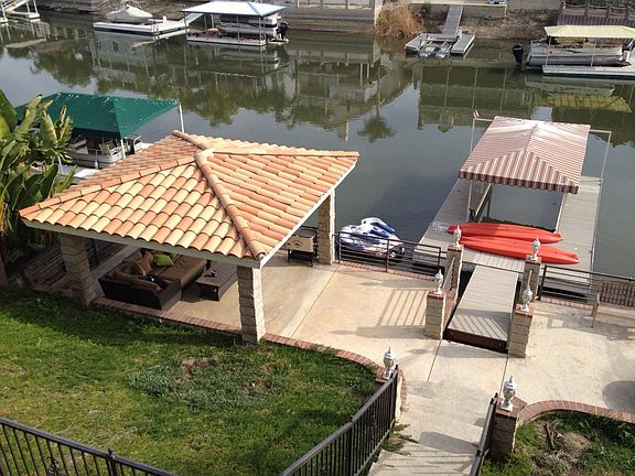 Beautifully situated Waterfront home with Pride of Ownership throughout. West exposure for the front of the house resulting in two decks, lower patio, and dual verandas that have afternoon shade. A cover boat dock wired for a hydraulic lift is included. Fantastic Views all around! Left veranda has brick structure and tile roof cabana that will accommodate large outdoor furniture. The right veranda offers a matching built-in fire ring. The main deck off the house has a nice trellis and is great for entertaining. Inside the home you will find hardwood floors throughout the entry, hall, family room, dining area, and kitchen. A wood burning fireplace with surrounding decorative stone and surround sound entertainment system. Nicely apportioned rooms will accommodate larger furniture. Master has a private bath, and features his and her closets with tons of space. Over-sized two-car garage with optional workbench and boat or RV parking separate from the driveway are added features. The home has been equipped with Solar through the Riverside County HERO program and has low fixed energy payments. Priced well and won't last long! Call today for your private showing!